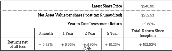 Important Information: Performance and analytics are provided only for the Net Asset Value of Marathon ordinary shares. Actual performance will differ for Investment Partners due to the timing of their investment. The 2015 & 2016 results are Not Meaningful (n/m) given the initial startup costs that Marathon incurred relative to its initial capital base, the increase in Net Asset Value Per-Share primarily relates to capital raised throughout the 2016 year. Returns are net of all fees.